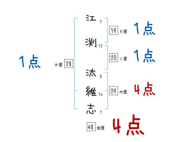 江渕汰維志さんの画数の鑑定結果