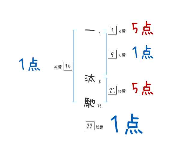 一汰馳さんの画数の鑑定結果