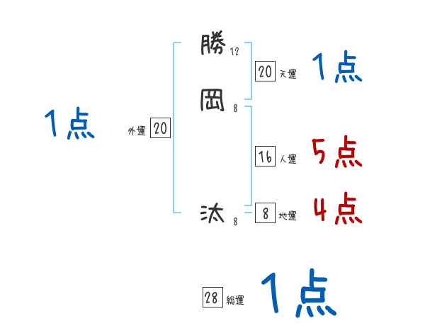総運![]() | 勝岡汰さんの総運は28画の1つ星!家庭環境に注意。スポーツで活躍できる能力があるかも。 あなたの人生を表す1番重要な運勢です。生涯を通じて影響する総合運となり、主に50歳以降の晩年期に影響を及ぼします。 |