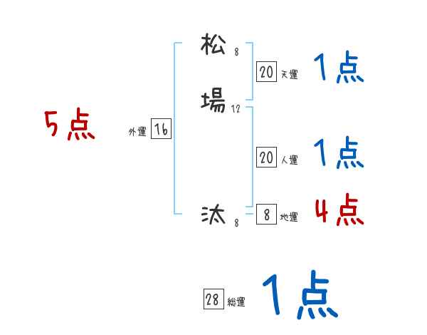 総運![]() | 松場汰さんの総運は28画の1つ星!家庭環境に注意。スポーツで活躍できる能力があるかも。 あなたの人生を表す1番重要な運勢です。生涯を通じて影響する総合運となり、主に50歳以降の晩年期に影響を及ぼします。 |