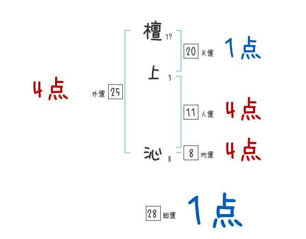 檀上沁さんの画数の鑑定結果