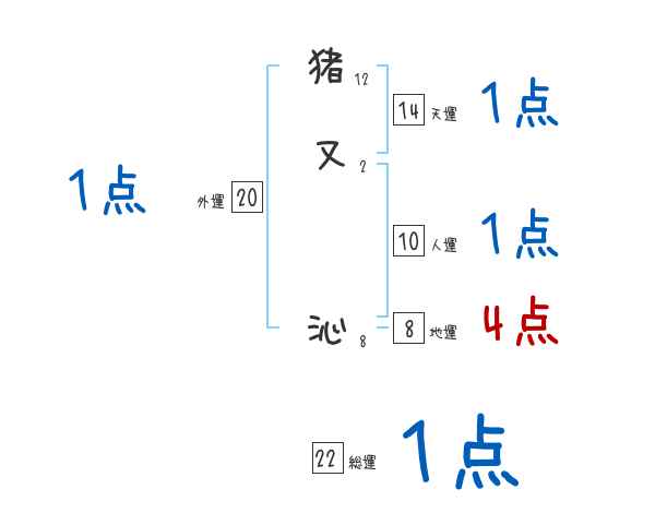 猪又沁さんの画数の鑑定結果