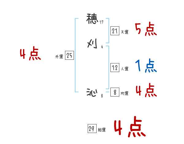 総運![]() | 穂刈沁さんの総運は29画の4つ星!完全主義で才能がある。厳格な心の持ち主。 あなたの人生を表す1番重要な運勢です。生涯を通じて影響する総合運となり、主に50歳以降の晩年期に影響を及ぼします。 |