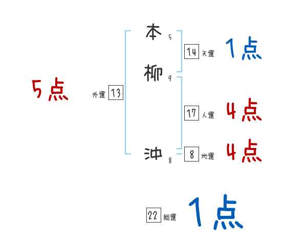 外運![]() | 本柳沖さんの外運は13画の5つ星!才能に恵まれ人気がある。名声を手に入れる。円満な人生。 生活面を象徴する運勢です。外部から受ける影響力を表し、結婚運、家庭運や職場、環境への順応性を表します。 |
