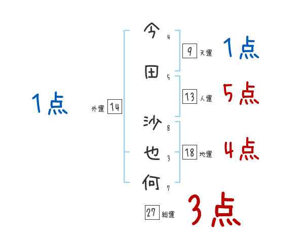 今田沙也何さんの画数の鑑定結果