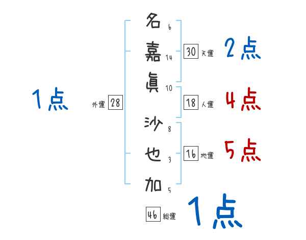 天運![]() | 名嘉眞沙也加さんの天運は30画の2つ星!浮き沈みの激しさに注意しましょう。 家系が持つ宿命的な運勢を表します。祖先から受け継いだ苗字ですので自分の力が及びません。家柄を象徴します。 |