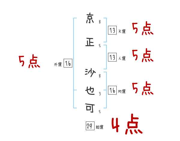 京正沙也可さんの画数の鑑定結果