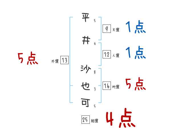 地運![]() | 平井沙也可さんの地運は16画の5つ星!人望が厚く大きく発展する。逆転成功が見える。 個性を表す基礎的な運勢です。性格形成や対人関係、行動力など家庭環境に影響されます。主に誕生してから20歳くらいまでの若年期の運勢を表します。 |