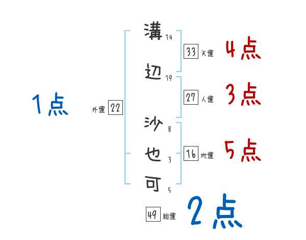 溝辺沙也可さんの画数の鑑定結果