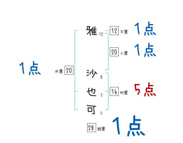 雅沙也可さんの画数の鑑定結果