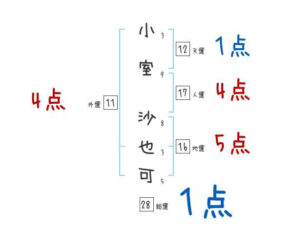 小室沙也可さんの画数の鑑定結果