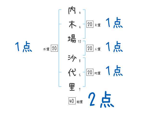外運![]() | 内木場沙代里さんの外運は20画の1つ星!社交が苦手。人とは違った才能があり波乱万丈な人生かも。 生活面を象徴する運勢です。外部から受ける影響力を表し、結婚運、家庭運や職場、環境への順応性を表します。 |