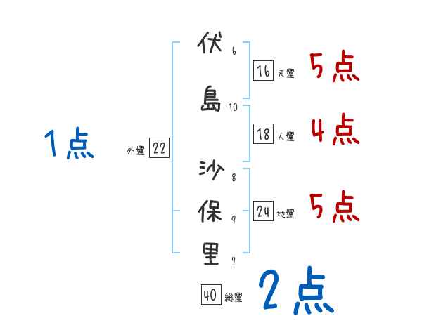 人運![]() | 伏島沙保里さんの人運は18画の4つ星!情熱的で剛気。忍耐力があり信頼される。 性格や才能などを表す2番目に重要な運勢です。人間関係や協調性、社会的な成功に影響します。主に20歳から50歳ぐらいまでの中年期の運勢を表します。 |