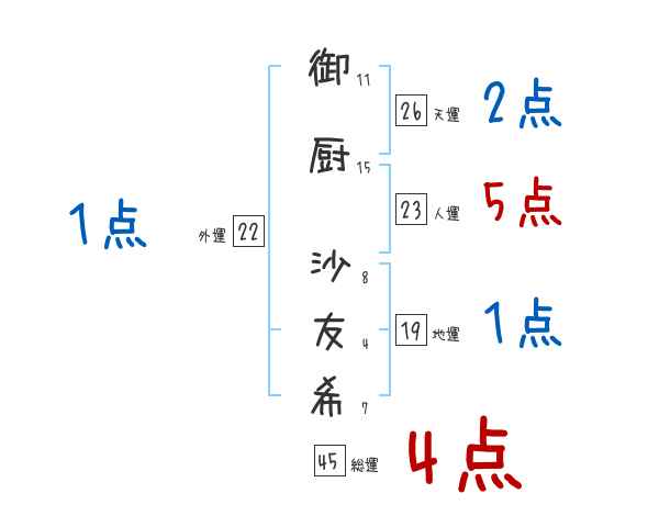 御厨沙友希さんの画数の鑑定結果