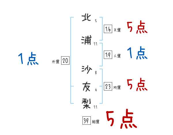 北浦沙友梨さんの画数の鑑定結果