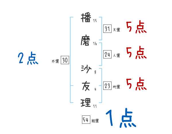 播磨沙友理さんの画数の鑑定結果