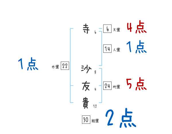 寺沙友貴さんの画数の鑑定結果