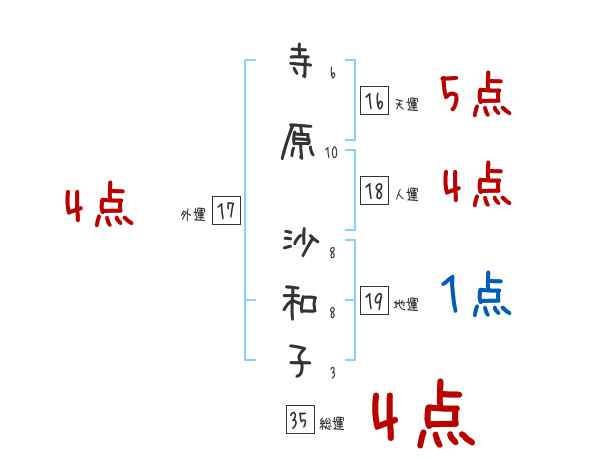 寺原沙和子さんの画数の鑑定結果