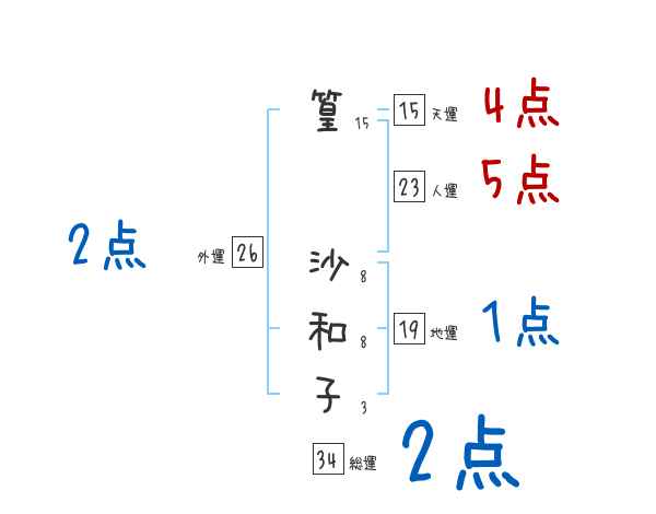 篁沙和子さんの画数の鑑定結果