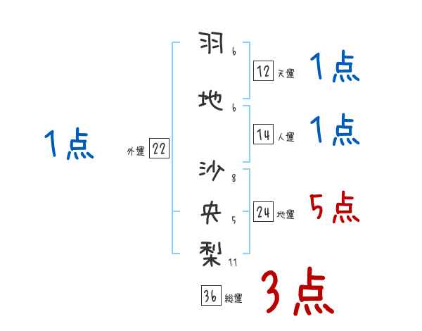 総運![]() | 羽地沙央梨さんの総運は36画の3つ星!先見性が豊かです。多少神経質で苦労することも。 あなたの人生を表す1番重要な運勢です。生涯を通じて影響する総合運となり、主に50歳以降の晩年期に影響を及ぼします。 |