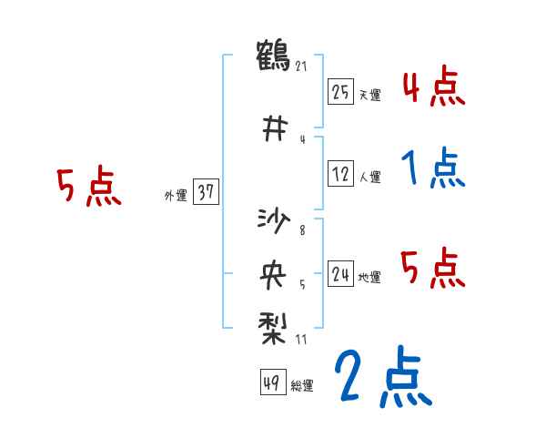 鶴井沙央梨さんの画数の鑑定結果