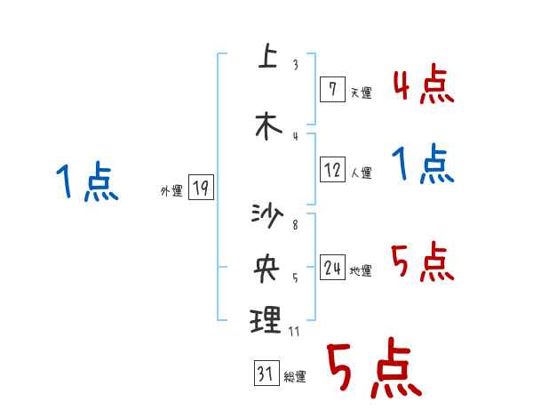 上木沙央理さんの画数の鑑定結果
