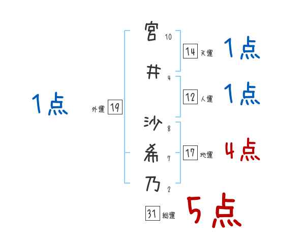 宮井沙希乃さんの画数の鑑定結果