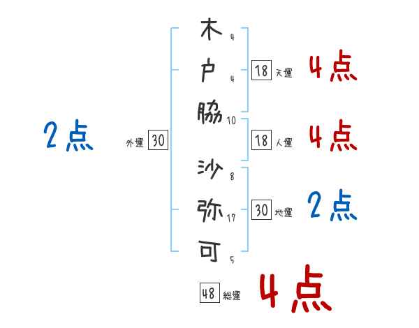 木戸脇沙弥可さんの画数の鑑定結果