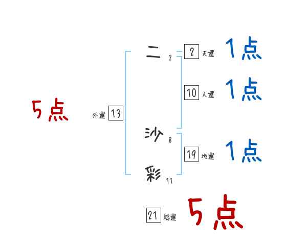 二沙彩さんの画数の鑑定結果