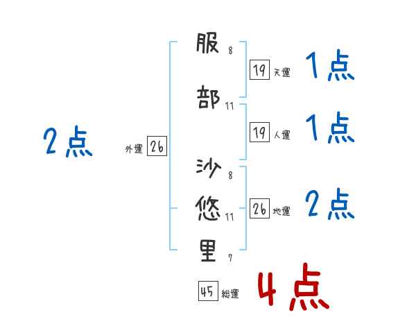 外運![]() | 服部沙悠里さんの外運は26画の2つ星!波瀾万丈かも。信頼できる人を大事にしましょう。 生活面を象徴する運勢です。外部から受ける影響力を表し、結婚運、家庭運や職場、環境への順応性を表します。 |
