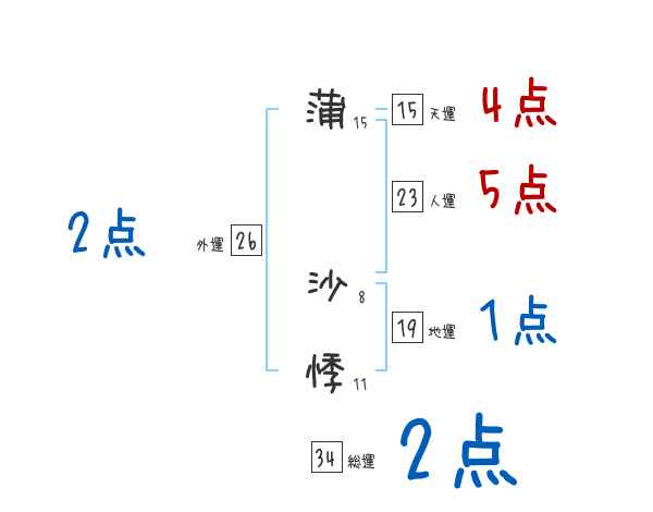 人運![]() | 蒲沙悸さんの人運は23画の5つ星!想像力に優れ活力がある。一代で成功し名誉を手に入れる。 性格や才能などを表す2番目に重要な運勢です。人間関係や協調性、社会的な成功に影響します。主に20歳から50歳ぐらいまでの中年期の運勢を表します。 |