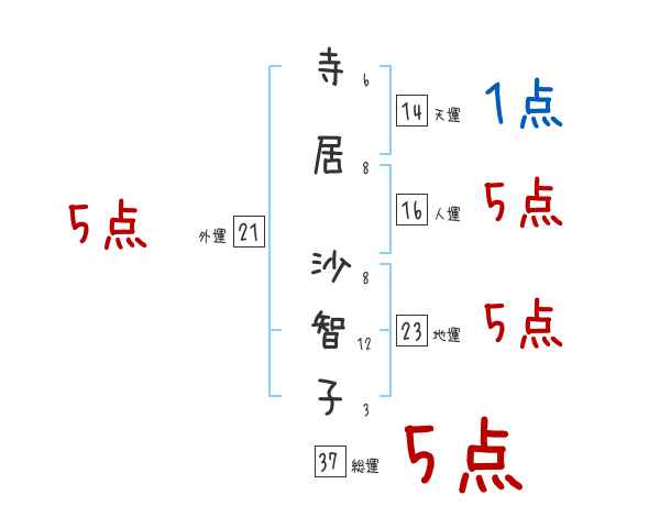 寺居沙智子さんの画数の鑑定結果