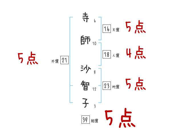 寺師沙智子さんの画数の鑑定結果
