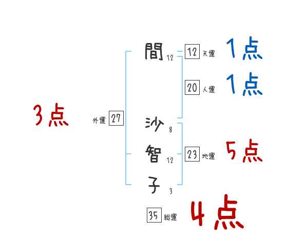 間沙智子さんの画数の鑑定結果