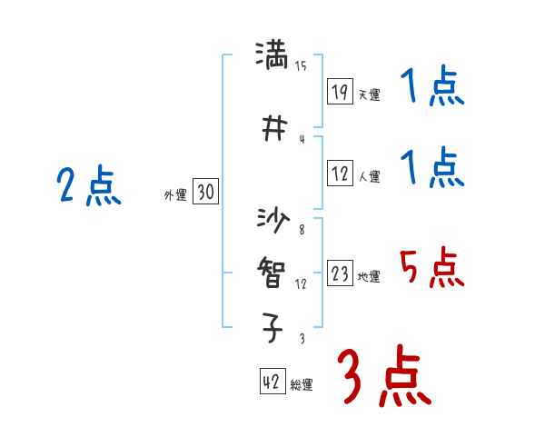 外運![]() | 満井沙智子さんの外運は30画の2つ星!浮き沈みの激しさに注意しましょう。 生活面を象徴する運勢です。外部から受ける影響力を表し、結婚運、家庭運や職場、環境への順応性を表します。 |
