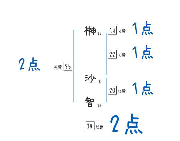 榊沙智さんの画数の鑑定結果
