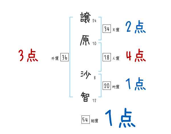 譲原沙智さんの画数の鑑定結果