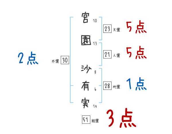 宮園沙有実さんの画数の鑑定結果