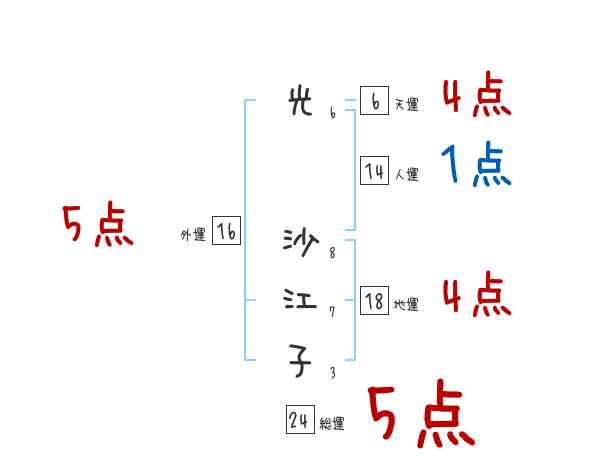 光沙江子さんの画数の鑑定結果