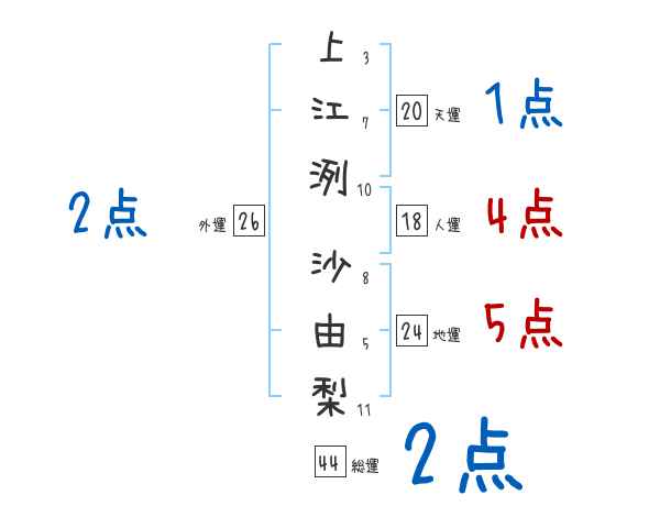 上江洌沙由梨さんの画数の鑑定結果