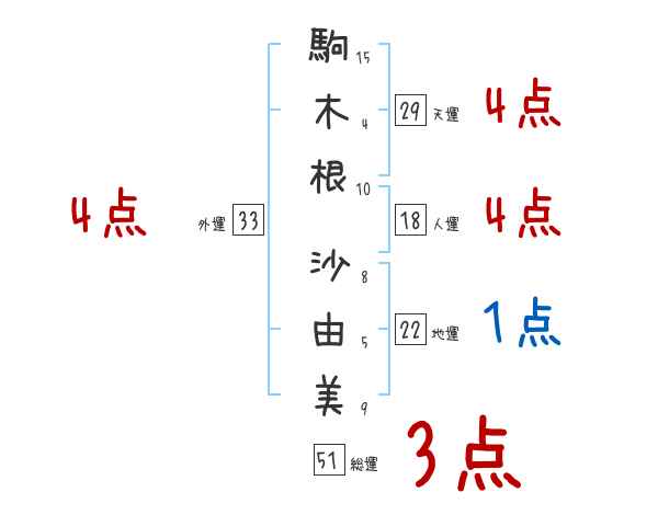 駒木根沙由美さんの画数の鑑定結果