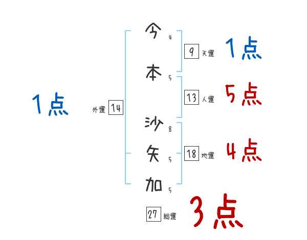 今本沙矢加さんの画数の鑑定結果