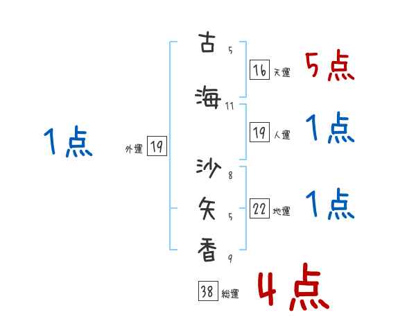 古海沙矢香さんの画数の鑑定結果