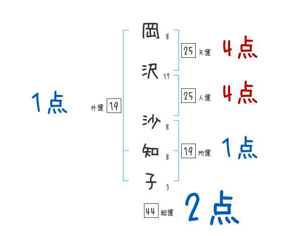 岡沢沙知子さんの画数の鑑定結果