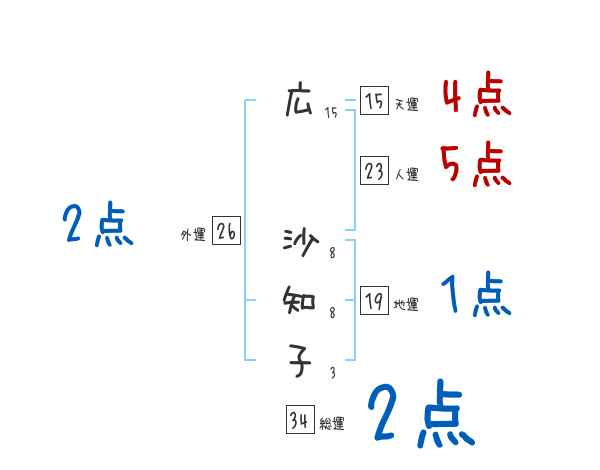 広沙知子さんの画数の鑑定結果