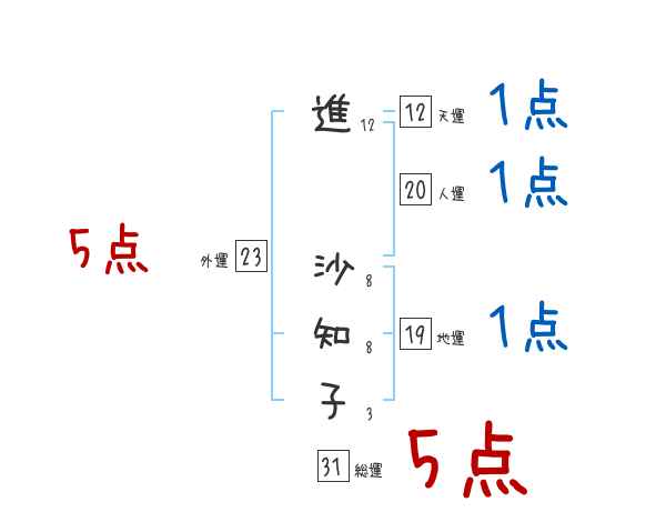 外運![]() | 進沙知子さんの外運は23画の5つ星!想像力に優れ活力がある。一代で成功し名誉を手に入れる。 生活面を象徴する運勢です。外部から受ける影響力を表し、結婚運、家庭運や職場、環境への順応性を表します。 |