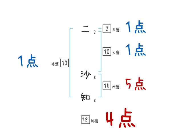 二沙知さんの画数の鑑定結果