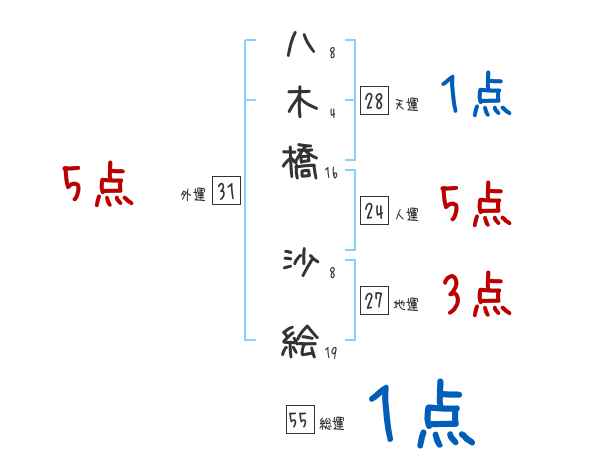 八木橋沙絵さんの画数の鑑定結果