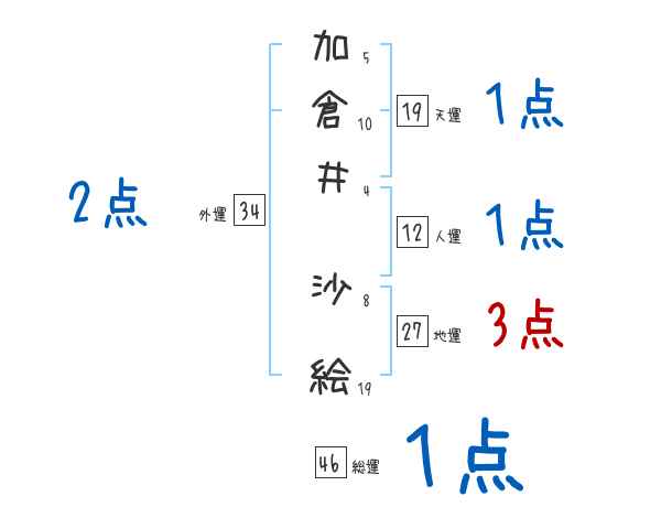加倉井沙絵さんの画数の鑑定結果