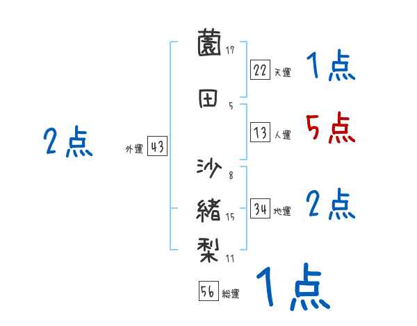 薗田沙緒梨さんの画数の鑑定結果